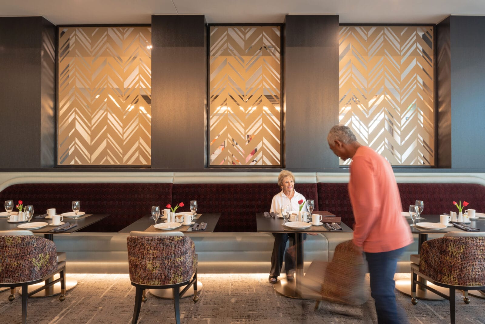 Executive Chef Paul Huddleston is known for doing things the right way—fresh ingredients, thoughtful preparation, and genuine attention to detail. Meals are made to order all day, with favorites like champagne brunches, carving and omelet stations, and his Brown Palace–style tea service. It feels less like dining in a community and more like being a regular at your favorite neighborhood restaurant.