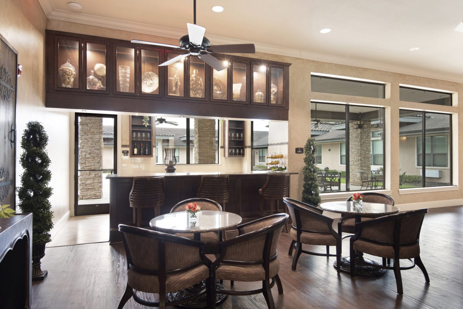 The calendar is packed—40 to 50 activities each week. There’s the popular Drama Club, where neighbors recently put on a standing-room-only show, and the Gardening Club that meets by the patio. Morning Wellness Workouts, happy hours, and trivia nights keep the days full and fun. Whether it’s pickleball outside or a quiet card game indoors, there’s always something happening and someone to enjoy it with.