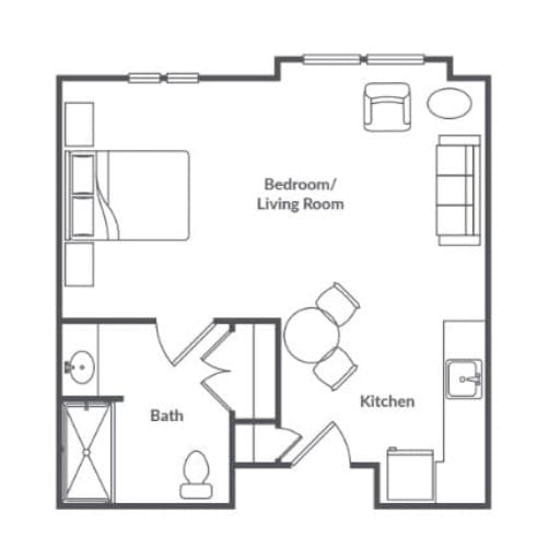 They truly feel like home. The Assisted Living apartments have high ceilings, built-in café tables, and full-size kitchens with refrigerators, microwaves, and dishwashers. Some even include patios for fresh air and quiet mornings. Memory Care studios are private, easy to navigate, and thoughtfully designed with safety and comfort in mind.