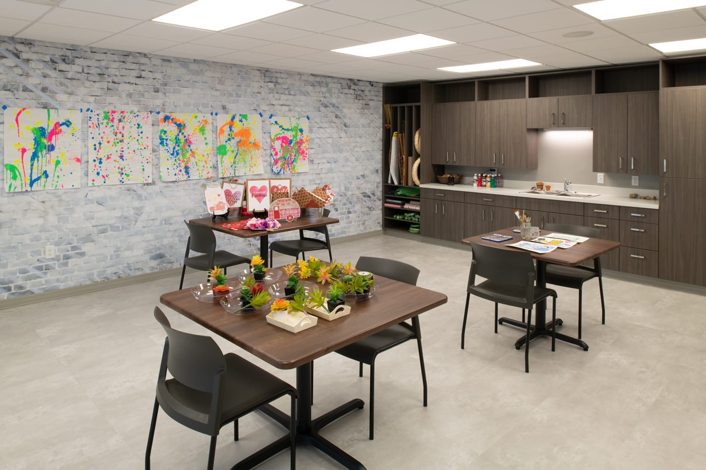 Daily life here is built around familiarity, dignity, and joy, with personalized activities that reflect each person’s interests and strengths. The secure memory care neighborhood is located on the garden level, with safe indoor and outdoor spaces that let community members move freely and comfortably throughout the day. It’s bright, open, and intentionally connected to the larger community—never tucked away. From birdhouse building and gardening to live music and conversation, our long-standing team creates opportunities for connection and calm in every moment.