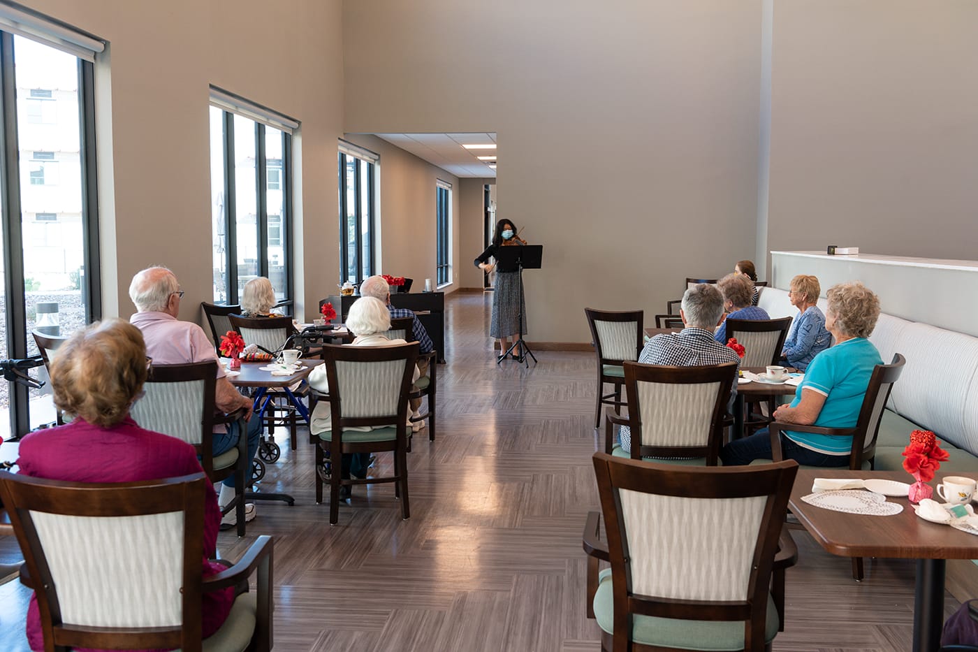 Dining at La Sonora is restaurant-style—full service, made-to-order, and thoughtfully prepared by an in-house chef. Meals are served throughout the day with à la carte selections, seasonal specials, and attention to personal preferences. Monthly cooking demonstrations and holiday feasts add extra excitement, and the dining team takes pride in learning each person’s favorite dishes. Whether it’s a casual breakfast or a festive dinner, meals here are something people genuinely look forward to.