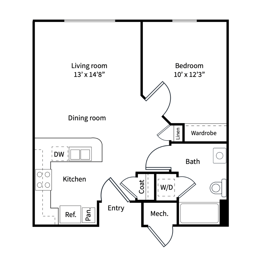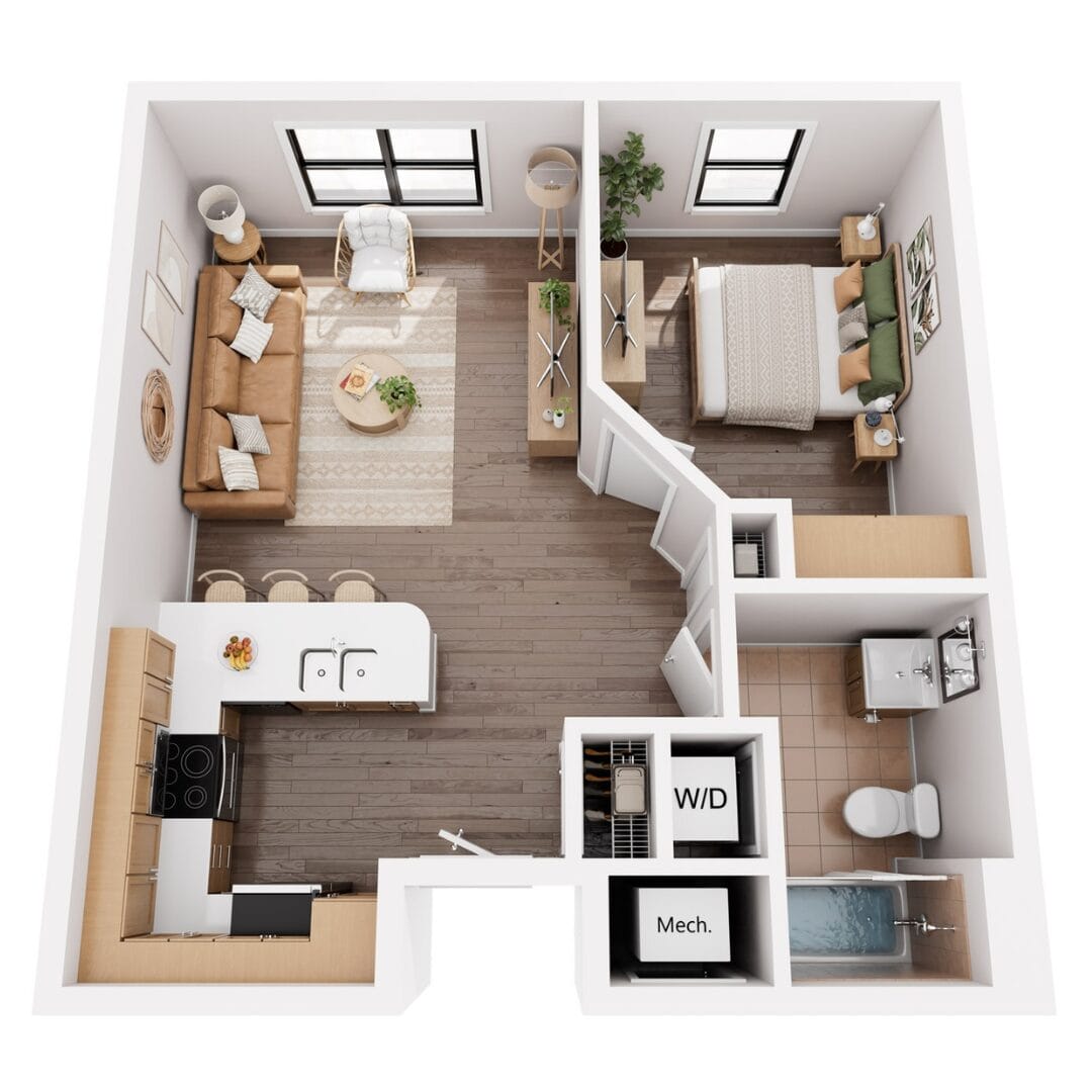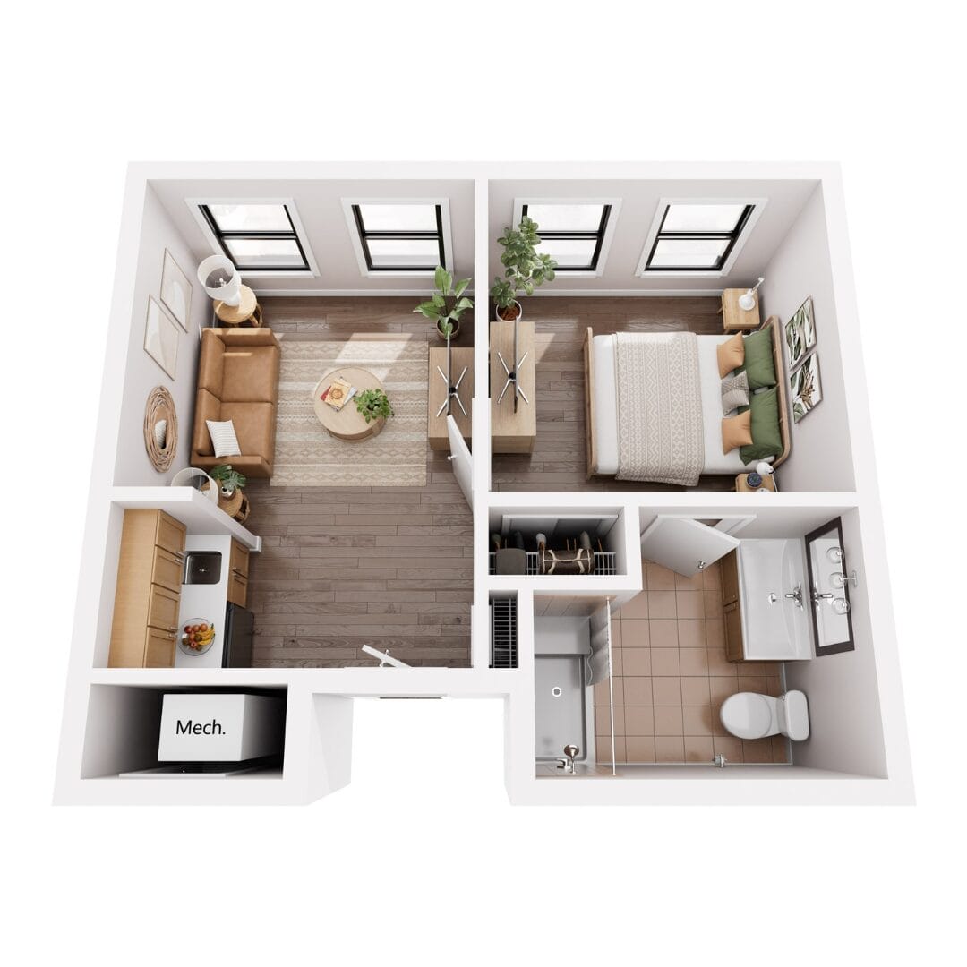Apartments at Villa de San Antonio are known for feeling open, bright, and comfortable, with high ceilings, open floor plans, and plenty of natural light. Independent Living homes include full kitchens, and most feature in-apartment washers and dryers.