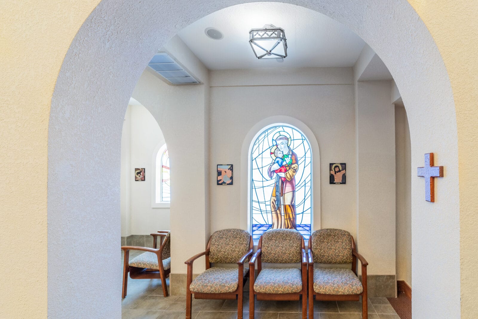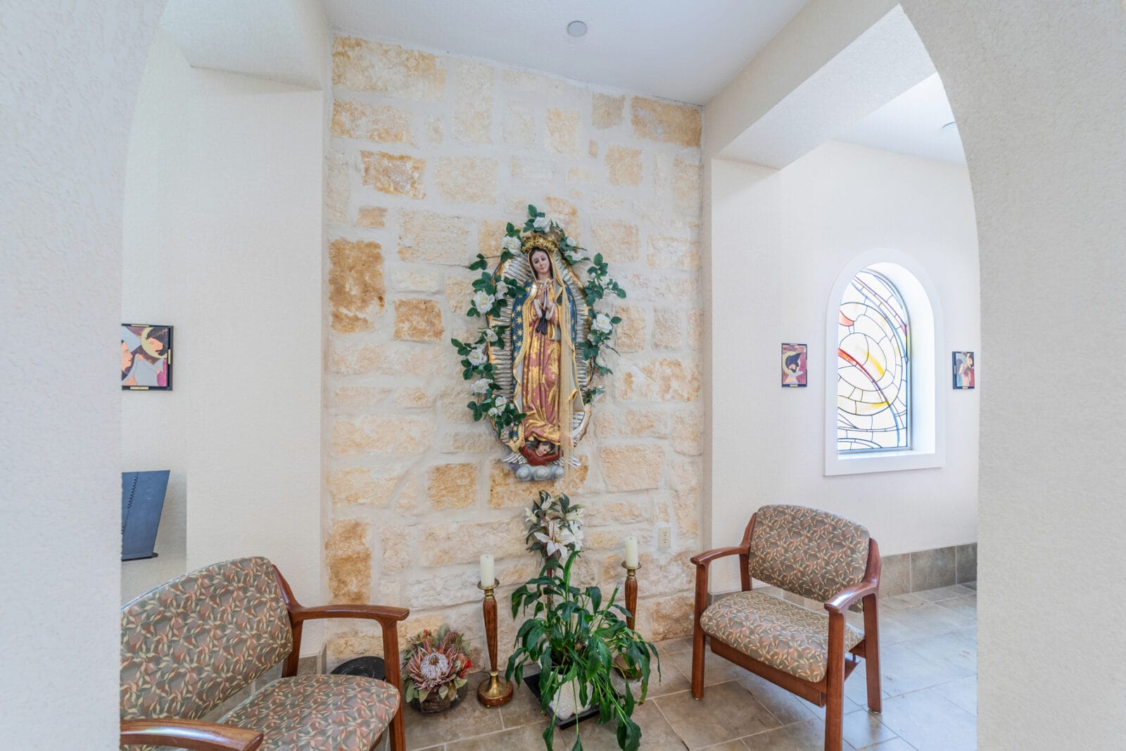 People don’t need to be Catholic to live here, but for many, the ability to continue familiar spiritual routines without leaving the community is deeply comforting.